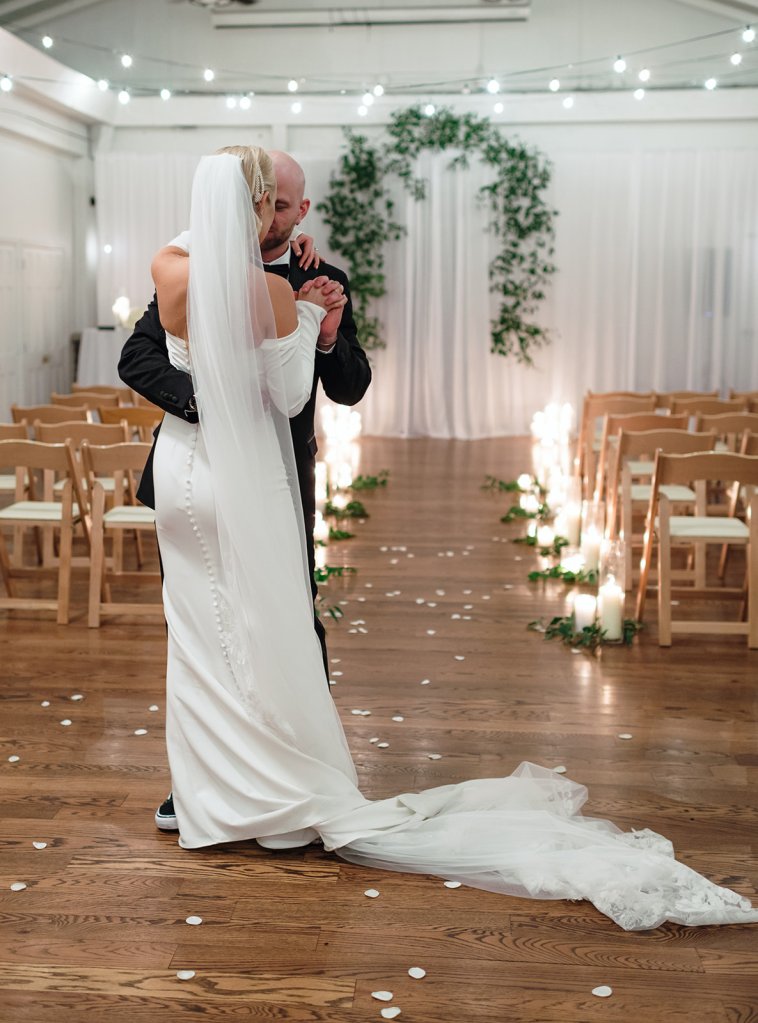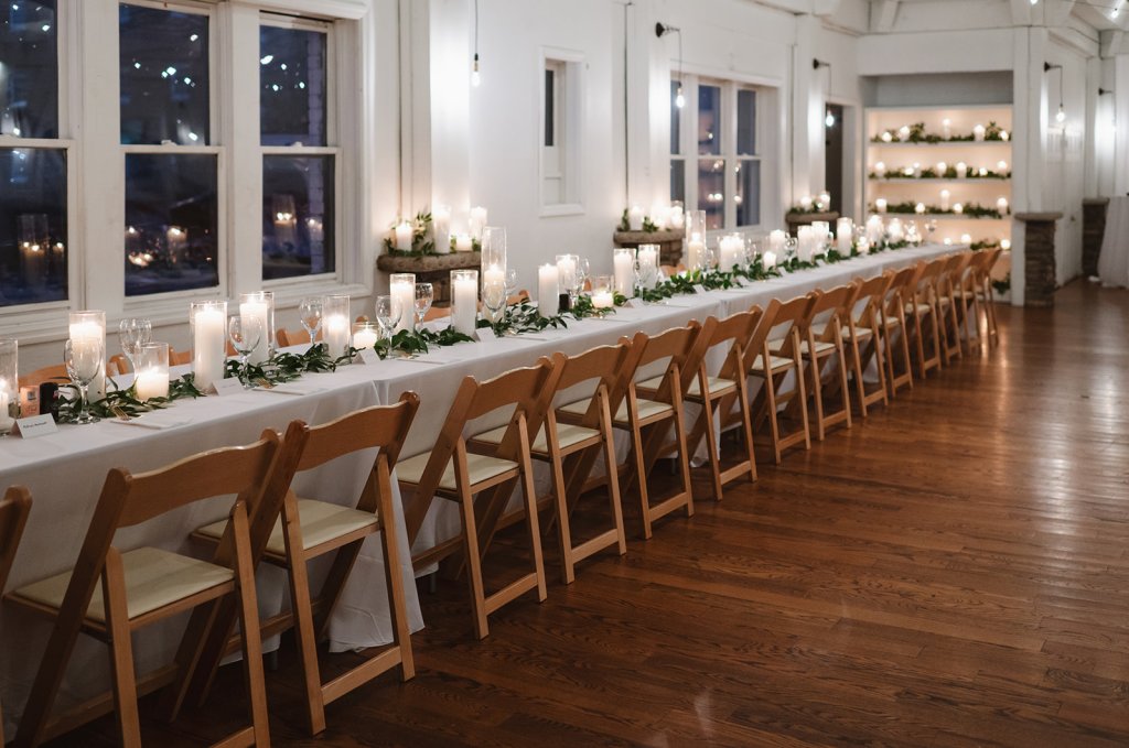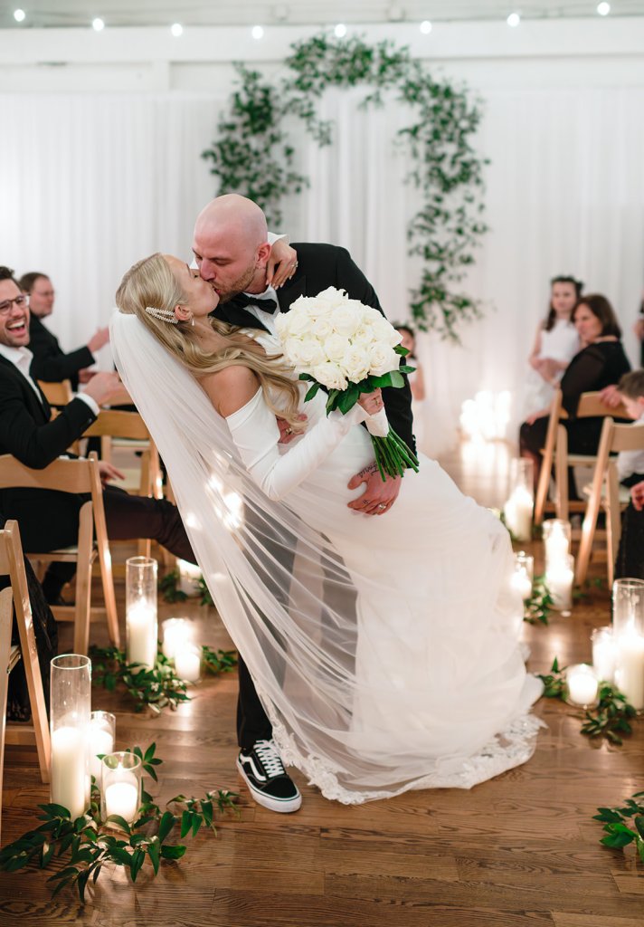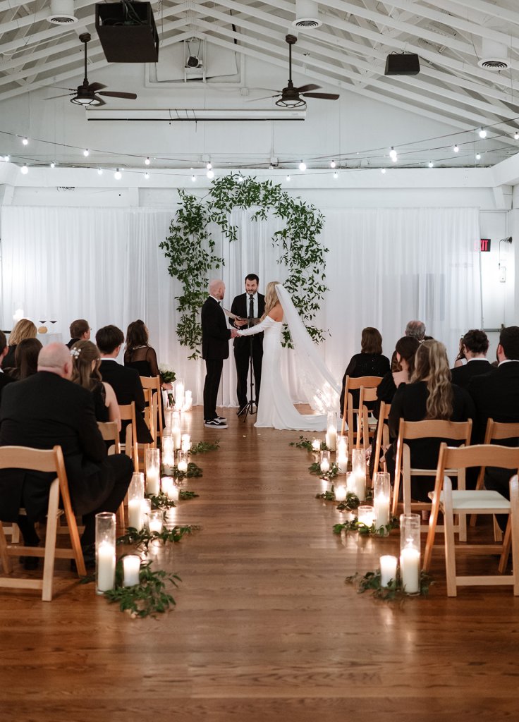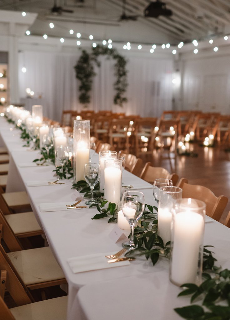 The Mudd’s wedding ceremony took place at The Caldwell in downtown Nashville, TN. Their vision was for an intimate gathering with their closest friends and family to celebrate their matrimony. Pulling inspiration from the unique modern urban venue, we utilized a combination of minimal greenery and a strategic excess of candle lighting to create a dreamy intimate environment for their guests to enjoy.