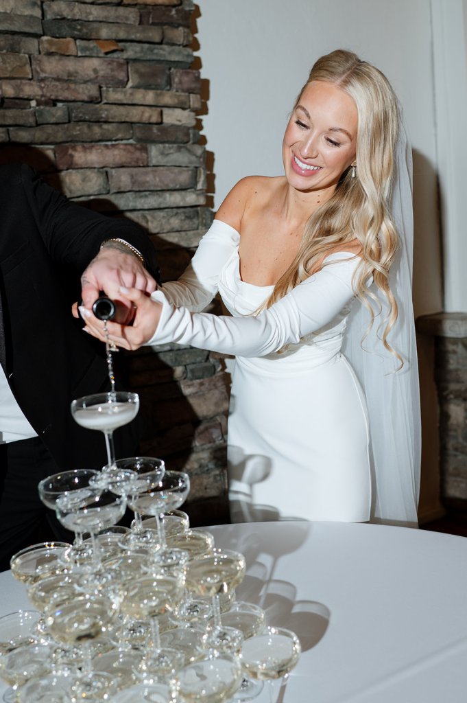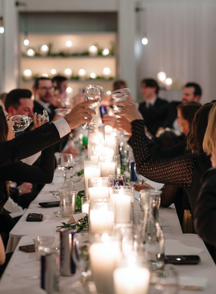 The evening began with a beautiful ceremony officiated by the Groom’s brother, Tom Mudd Sr. and was closely followed by a luxurious dinner that did not disappoint. Dinner included toasts from their fathers and closest friends, traditional dances, a celebratory champagne tower toast, a vintage cake cutting, and finally a reception celebration full of dancing.