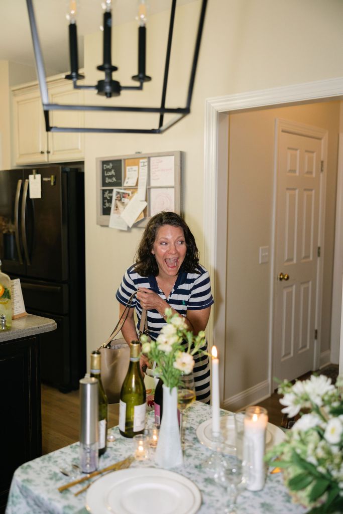 Originally, the plan was to host a dreamy outdoor dinner under the stars. However, the weather had other plans. Just as the party was set to begin, a sudden thunderstorm rolled in. We had to quickly pivot—moving all the living room furniture into the garage and replacing it with a stunning new tablescape that would truly wow her. Although this last-minute change required a full team effort, it created a memory we’ll all laugh about for years to come.