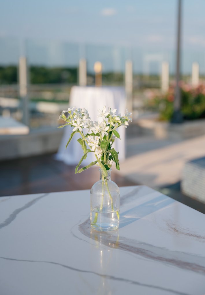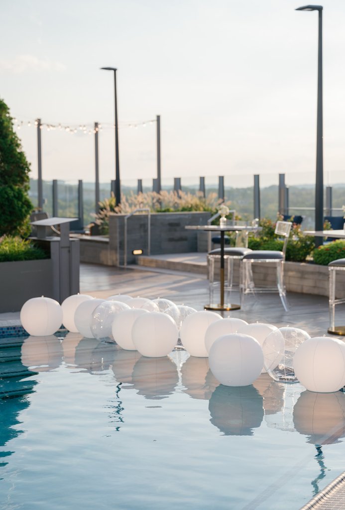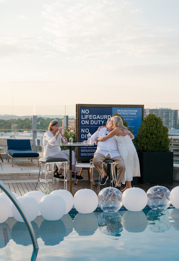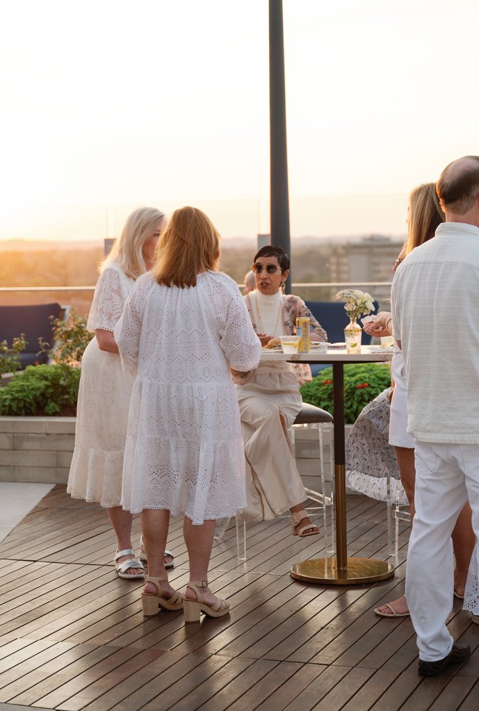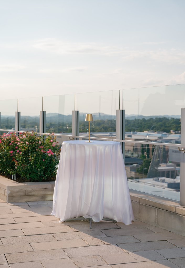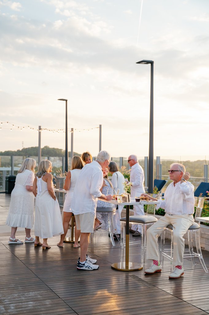 Our goal was to design an event that felt timeless, elegant, and effortless. By inviting guests to dress in all white, we created a cohesive and striking visual that instantly elevated the atmosphere. Add in the sweeping rooftop views of the Nashville sunset, and the scene was nothing short of breathtaking. Every detail — from the crisp white décor to the subtle golden hour glow — set the tone for an unforgettable evening.